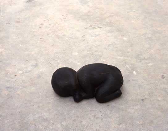 The work has become known as the Iron Baby and in its darkness and density suggests a small bomb. The material is iron (concentrated earth), the same as the core of our planet. Here, this tiny bit of matter in human form attempts to make us aware of our precarious position in relation to our planetary future. It is the gesture of a body closed in on itself, needy of comfort, shelter, sustenance and peace.’