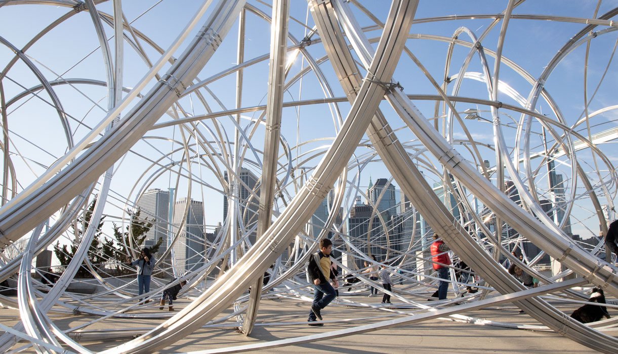 New York’s Brooklyn Bridge Park Pier 3 will be the site of the creation of a vast ‘drawing in space’ - New York Clearing. A single line made of 18 kilometres of square aluminium tubing that loops and coils without beginning or end, turning itself into an environment for the viewer that counters the grid of modernism and the city with swooping lines of energy.