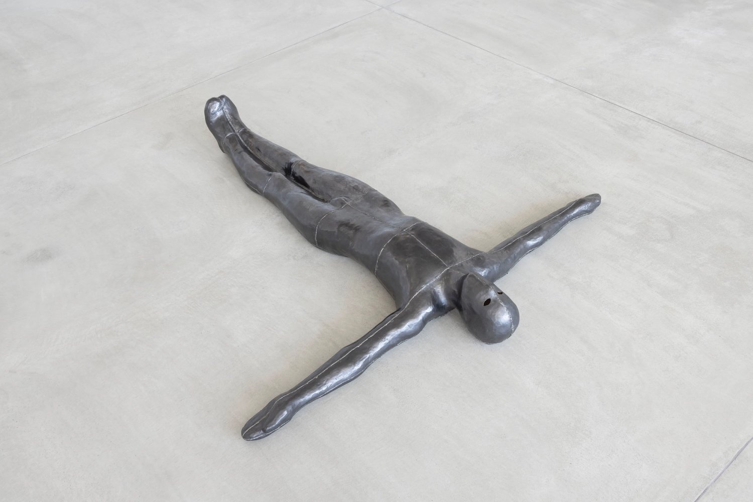 Photograph: Antony Gormley, Fill, 1984, lead, fibreglass and plaster, 25 × 203 × 205 cm. Installation view, Museum on Echigo-Tsumari, MonET, Japan. Photo by Nakamura Osamu.