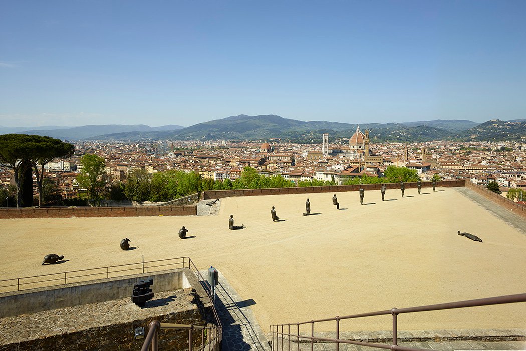 The Forte is an extraordinary example of a terraforming: a natural hill transformed by Ferdinando de’Medici into an artefact. It has a long association with contemporary art and has often been used as a monumental context for monumental sculptures. Rather than attempt to insert works that try to match the scale of the site, I have chosen to exhibit works that are life-size and that will allow the mass and form of this remarkable construction to speak.