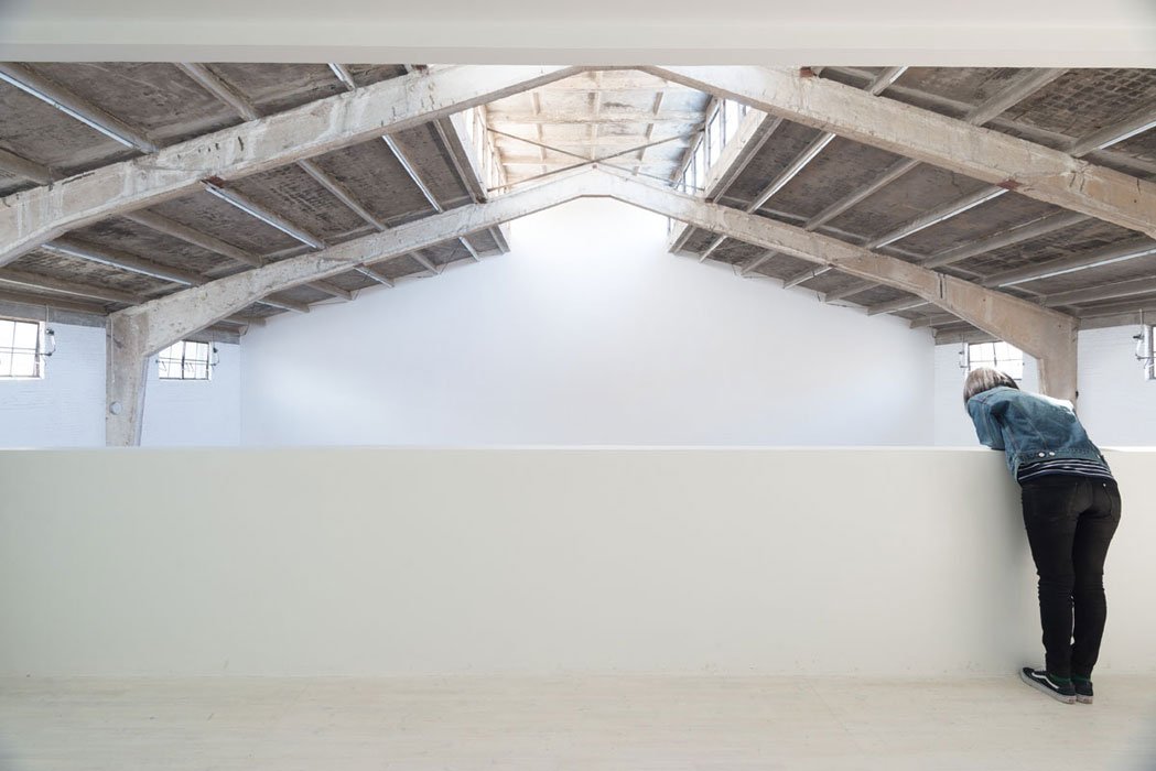 The themes of reverie, disorientation and the undermining of the certainties of the built world are introduced at the start of the exhibition, with the inclusion of two versions of Edge III, 2012. Fixed horizontally so that they stand perpendicular, two massive indexical cast iron ‘bodyforms’ jut out from the walls. One looks up from bed height and the other looks down from the ceiling. Together, the works undermine the determination of architecture, preparing the viewer for the liminal experience at the threshold of Host.
