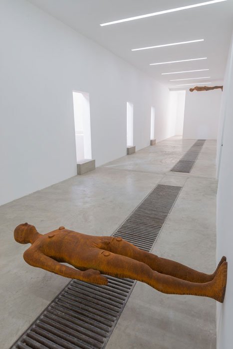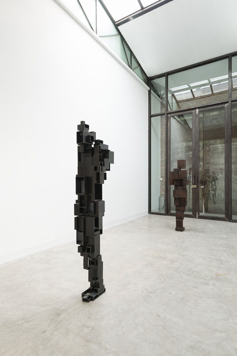 In addition, a series of five sculptures in mild steel, collectively called ‘Stations’, will be exhibited together for the first time. These works, like many of the artist’s recent body sculptures, use the syntax of architecture to translate body mass into the equivalent of a high-rise tower. In much the same way that the skeleton of a building is composed of columns and floors, here the body is intersected by clear horizontal divisions and vertical pillars, whose dimensions vary from 5 to 20 millimetres thick. Although architecture aims to produce a stable world, these works suggest vulnerability and potential instability.