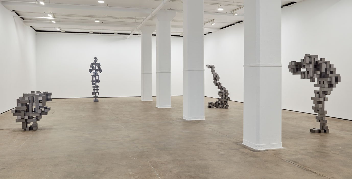 In the main gallery are five new monumental works from Gormley's recent ‘Big Beamer’ series. These previously unexhibited works deconstruct and reassemble the interior volume of the body through interlocking steel beams that run in all three axes. Created at one-and-a-half-times life-size, they represent a body in five unstable moments of rest, from crouching to fully erect. In spite of their grand scale, the works remain remarkably playful.