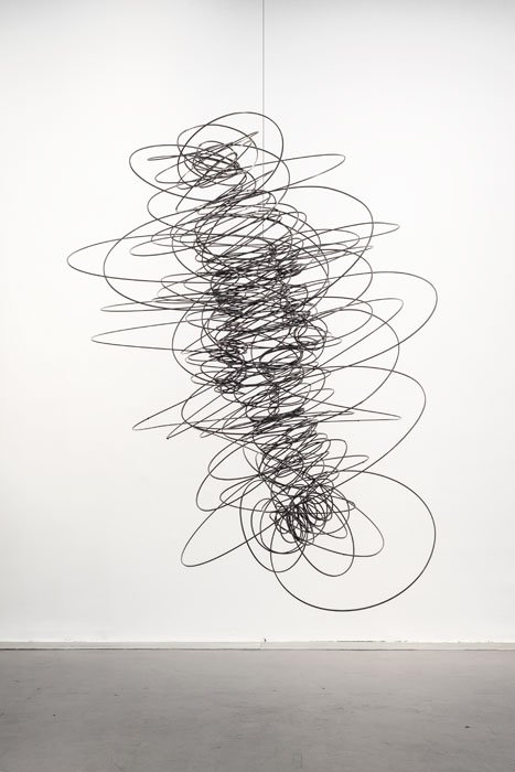 Four additional suspended sculptures (2008 - 2012), function like drawings in space, each transforming mass into energy and object into field to reveal an open body-space at its core. In these dematerialised works, the bodies are free and weightless - evoking a state of being rather than illustrating an action.