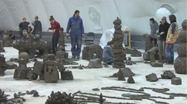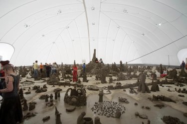 The inaugural IHME Project for the Pro Arte Foundation, Clay And The Collective Body (2009), brought together clay and Helsinki locals in a purpose built, humidified pneumatic building. The public had the opportunity to work on and with a huge 2.5 × 4 × 4m clay cube weighing 100,000 kilograms, to use it to make objects of any kind, big or small, alone or with others. The clay was intended to be both a challenge and a shared bodily experience, allowing an opportunity for meditative, concentrated activity with an emphasis on non-verbal, bodily communication.