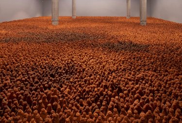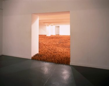 Antony Gormley presented Field For The British Isles (1993) in the Great Court’s exhibition space at the British Museum. This installation coincided with an exhibition of Antony Gormley’s works on paper in the Museum’s Prints and Drawings Gallery, which ran from 24 October 2002 to 21 April 2003.