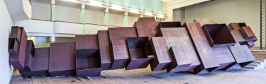 Vessel is made out of 39 interconnecting rectangular steel boxes that meditate on the renaissance trope of the city in the form of a man, by making a man made in the form of a city. This recumbent anti-monument, at first seen as an off-kilter Judd, now provokes greater questions about the social and inspirational role of sculpture and its potential to provide direct bodily experience.