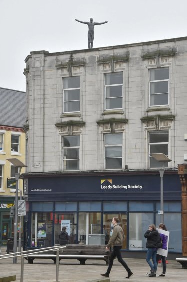 Places to Be, 1985, lead, plaster, fibreglass and air, standing figure: 185 × 190 × 35 cm. Permanent installation, Peterborough, England. Commissioned by the Peterborough Development Corporation, Peterborough, England. Photograph by David Lowndes.
