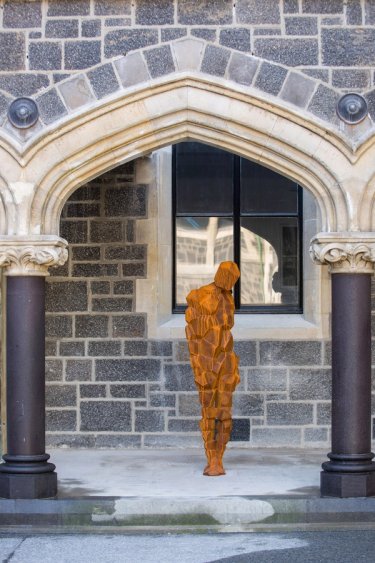 Stay, 2014, cast iron, 184 × 48 × 44 cm, edition of 5 plus 1 AP. Permanent installation, Arts Centre, Christchurch, New Zealand. Commissioned by the Christchurch City Council Public Art.