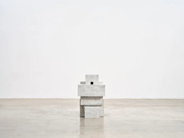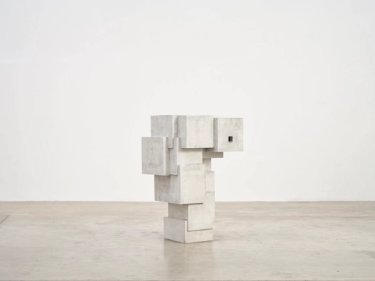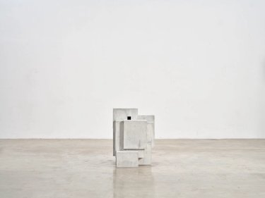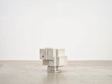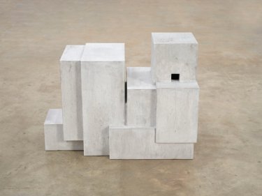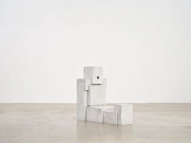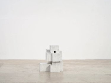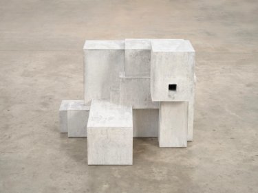 Conceived as intimate bunkers for one, these sculptures consolidate, structure and embody a spectrum of body postures – variously balanced, compressed and tensioned – that invite a state of mind. Small square orifices at the position of the mouth offer visual access to a darkness within each concrete shell. Both building and surrogate body, these works are meditation cells for imaginative inhabitation.