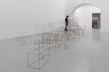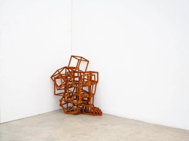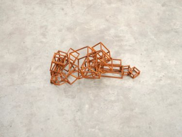 With the Cast Framers, I became interested in the relationship between precarity and stability and how a collection of orthogonal space-frames could be crashed into one another or loosely linked to evoke various states of mind and body, and how they might foreground our relationship to space enforced and materialised through architecture. Retreat (Frame) (2021), for example, delineates a body-space formed by, and ‘retreating’ into, the corner of a room, whilst Relief (Frame) (2021) lies horizontal, back pressed against the wall, attempting to reconcile the organic form of a body with the hard surfaces and rigorous geometry of our habitat. In both, the space-frames are fully fused.