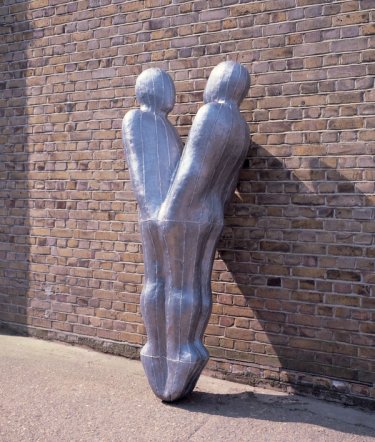 Within the body there is a doubling of many of the organs: two sides of the brain, two eyeballs, two ears, two lungs, two testicles, two kidneys, two hands, two legs. I wanted to make single sculptures that extend this mirroring to two complete bodies conjoined.