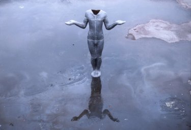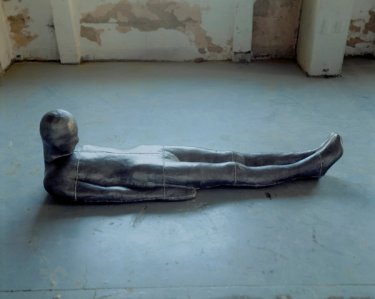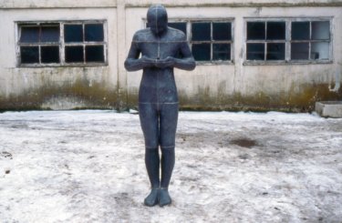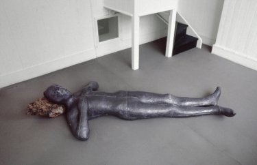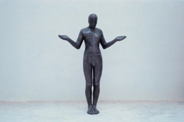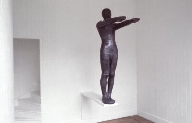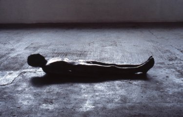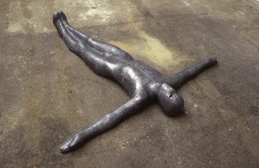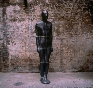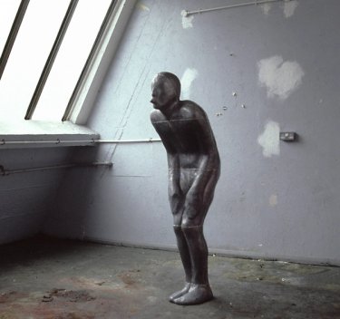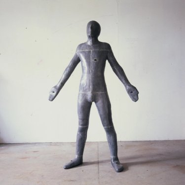After the making of the three-part lead bodycase works, I started making single lead bodycases for a standing man: Untitled For Francis, Breath, Address, Part, Ask, Standing Ground, Peer, Across The Air, Moment. These works tried to repossess the standing male figure, but in a different way from heroic sculpture. Untitled For Francis uses the allusion to the stigmata to make five eye-shaped holes that give access to the darkness of the body. Breath has bullet holes of the same calibre as Seeds and the gun in Fruits Of The Earth.