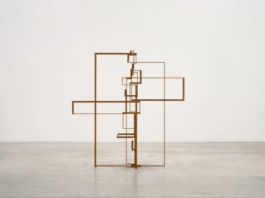 Developed over a two-and-a-half-year period, the Extended Strapworks use two or four circuits of rusted ribbon steel to pass around the space of a body: Möbius strips, the internal surfaces of which become externalised and vice versa. The works break the body-boundary and reach out towards the edges of the spaces they inhabit, recognising how a room’s orthogonality affects our internal perception of space. Linear and open, these works question where the body begins and ends and to what extent we, having made the world, are then made by it.