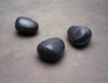 All the first lead work involved covering and uncovering, insulating and revealing found objects; either closed forms like stones or open forms like bowls and shields. I was very interested in using scraps and pieces fitted very closely together as a kind of jigsaw puzzle to make entities or complete forms. In Mask, I was interested in the relationship between the visible and the invisible, the apparent and the hidden.