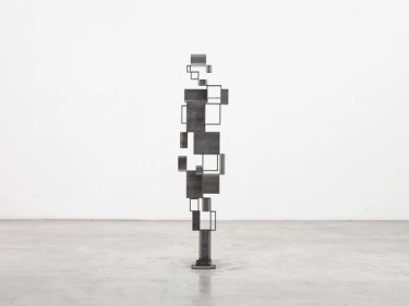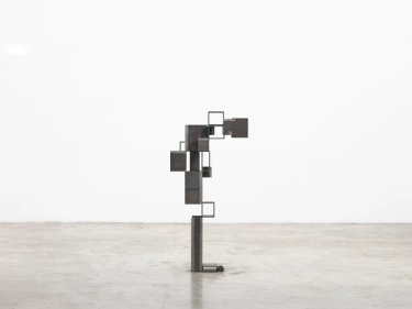 I wanted to open the body up. I had been using absolute masses that are solid and confront you with your own bodily spatial displacement, but another way is to make intersecting cells out of planes that are enclosures but are open enough to invite a speleology of the eye. I want to enliven the viewer's inquisitiveness, but also confront them with their own passage through space and time. As you walk around the works, they shift from being very transparent to very dense – they are assembled by the viewer. I seek a tension between open and closed, stability and the potential to fall. Open Switch (2016) is probably the most unstable, almost falling. Some are twisted, where the centre of gravity is pushed almost over the edge. Open Gauge (2015) is probably the most classic, a riff on the odalisque, completely dense from the front but as you move around its voids come into play. Open Home (2014) is very defensive. This dance of open and closed is not just a game of construction, it's psychological.