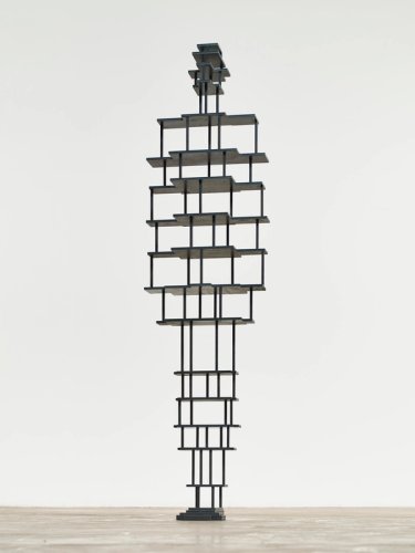 The works are called Stations – a word that relates to the stations of the cross and to redemptive suffering, but here, replaced by something closer to an eastern idea of a vertical system of energies, whether the chakras of yoga or the meridians of acupuncture. I see the works as instruments against which our own scale, our own weight, our own density, can be felt.