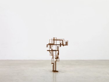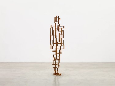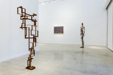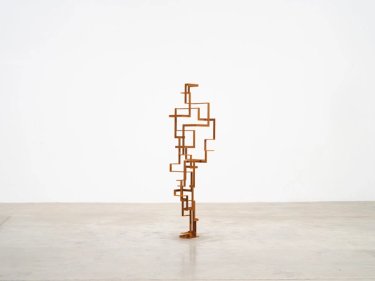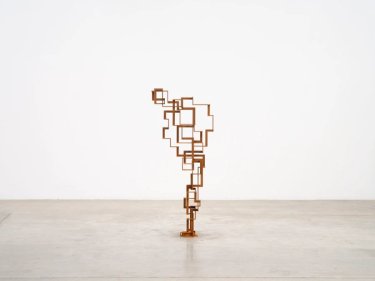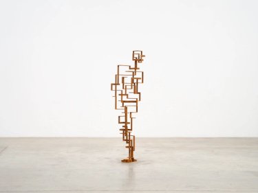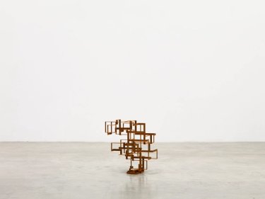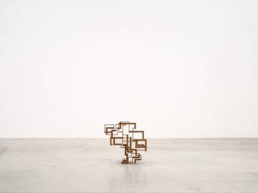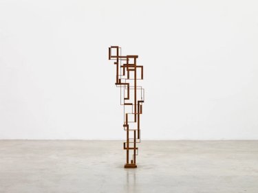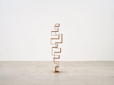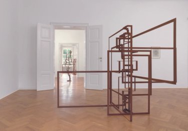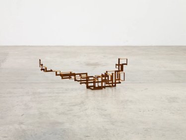 A structural and conceptual journey has begun in which inner and outer surfaces switch function, as is found in the Mobius strip or the Kleinian bottle. The dynamic between still object and moving viewer is activated with a line that appears to continually change as one’s perspective changes.